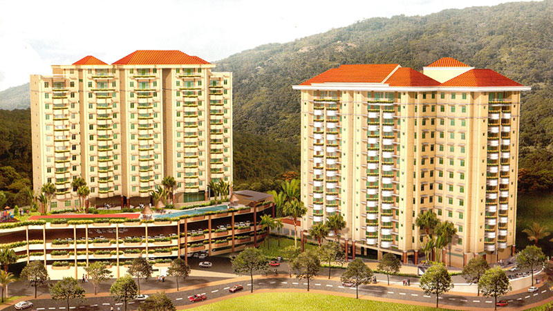 2栋13层的高级公寓(116个典型单位 & 6个顶层空中别墅)&1栋4层楼的停车场,设有游泳池,网球场 & 屋顶儿童游乐场。